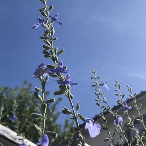 アズレアセージ 春の終わりから仕込んでいた 憧れの秋咲きのセージ 夏の間 茎と葉にエネルギーを着々と貯めて 一気に全開です 同じ秋咲きでも ぎっしり咲くユーパトリウムとはまた違って 花はまばらでその色と共に楚々としたイメージです 夏の名残りのセンニチコウと仲良く庭を飾ってくれています 明るいライトグリーンの葉っぱ🌿は常緑のジャスミン・フィオナサンライズです
