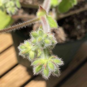 先月 珍しく 苗でお迎えしたペパーミントゼラニウムさん もうとにかくモフモフのフワフワで 私はもうメロメロです😍 花芽も膨らんできて 近々 お花と対面出来そうな予感にワクワク o(^-^)o✨ それにしても 何かに似てるなぁ〜と思ってたのですが… あ!金平糖!でした