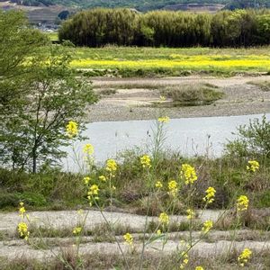 ごみ捨てついで散歩 久しぶりに土手に! 対岸に菜の花畑発見 名前も知らない草花が増えてた! 花水木も今満開✨綺麗ねえ✨ イネ科の植物が勢いよく伸びてきてたからもう行けない💦 今もヒノキの花粉症すごいけど😅💦