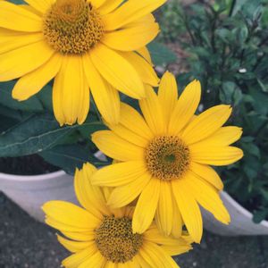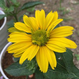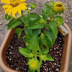 栄養系ひまわり ヘリオプシス ソレドオーロ(覚えるの無理)が咲きました!つぼみもたくさん✨ 寄せ植え用の広浅の鉢に植えていたので、持ち上げて根を確認しようとしたら、鉢から根が出てたのでそのまま植え替えました。