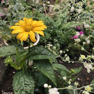 夏の暑さも異例の長雨もこの子だけ元気😊PWのヒメヒマワリです。