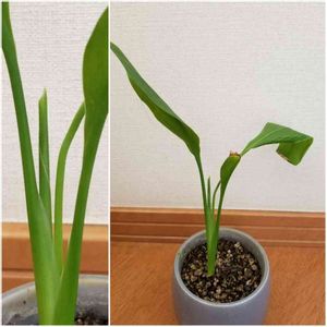 次から次へと新しい葉が出てきました。 厚みのある葉なのでまるでフェイクグリーンのようです。 極楽鳥花が咲くのはまだまだ先になりそうです。