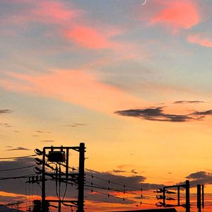 7/28〔旧暦 閏6月4日〕 本日♦2回目♦の投稿です‼️🤗 19:04 四日月❓🌙と夕焼け‼️🐶 (今日も夕焼け❗) 昨日よりちょっと太めの月です‼️😄 東京の日の入りは昨日より1分早い 18:49 でした。今日の投稿も、日の入り15分後の西微南の空です。😸 (東京の月の入りは昨日より25分遅い 20:51 です。) ⭕ 昨日の投稿とじっくり比べてみてね。🤓 昨日より1分早い時間ですが、ちょっと太めの月で、月の位置はだいぶ高く、南寄りです‼️🧑🎓 ⭕ 電柱の左下の一番高い山は、神奈川県最高峰、丹沢山地の蛭ヶ岳(1673m)です。🤗 富士山も左下の方に見えます。(小さなアンテナの後ろ)😅 🌡 今日は34℃まで上がりました‼️😅 明日は36℃予想です‼️🥵 🟢 撮影時の月のデータ等…… ♦️西微南の空 仰角 21.6° (昨日の投稿より高くて南寄り❗) 瞬間の月齢 3.62 (昨日の投稿より1増加❗) 輝面比 14.17% (昨日の投稿より6.35%増加❗) 気温 28.5℃ 晴れ ☀ 南西の風 2m/s (ベランダより)
