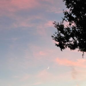 夕焼けが綺麗で空を見たら、お月様に出会えました 青空と緑の下を歩いた帰り道、暑かったけれど散歩に出てよかった 7/27
