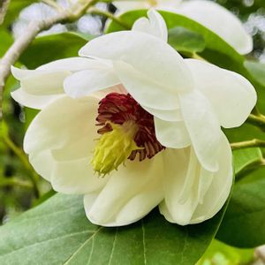 おはようございます♪ 神代植物公園の散策 🤍大葉大山蓮華(オオバオオヤマレンゲ)🤍 モクレン科モクレン(マグノリア)属 落葉低木 開花期5〜7月 一輪だけ咲いてました 鮮紅色の雄しべに惹きつけられます