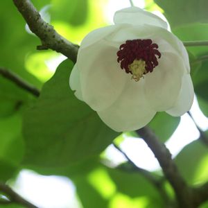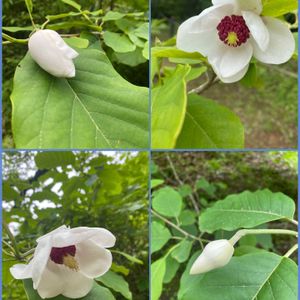 おはようございます♪ 神代植物公園の散策 🤍大葉大山蓮華(オオバオオヤマレンゲ) 🤍深山蓮華(ミヤマレンゲ)🤍 モクレン科モクレン(マグノリア)属 落葉低木 花期5〜7月 初夏に白色の花を横向きに咲かせます。 大山蓮華より葉が大きく、雄しべが鮮紅色で花弁の白色との対比が鮮やかです 🤍白い水曜日🤍