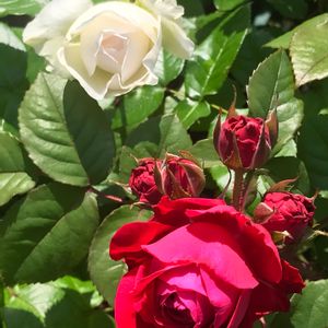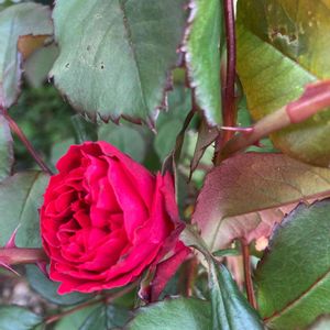 マイローズ 真っ赤なバラは、元気をくれますね🌹 この子は"薔薇時間"が長く、強い子です。 隣のボレロさんが花開くのを待ってます♡ 🏷真っ赤な火曜日♥️