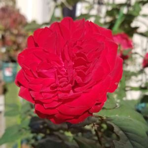 憧れの赤いバラ。マイローズ✧︎*。 この感じ、他の花達とは別格なので(笑)ウッドデッキの上に特別席を用意しました(*´˘`*)♡ 花持ちバツグンで、長く楽しめます❁⃘*.゚ 耐病性がとても高いようで、初心者の私にはありがた〜い(^^; 我が家の秋を華やかに彩ってくれてます( ˘ᵕ˘ )