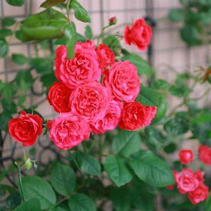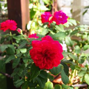 マイローズ2番花。先月末の剪定から20日後の紅色に惚れ惚れ💕 先日はオオシロオビクロハバチに葉っぱを数枚食われていて「おのれ〜!」となりました