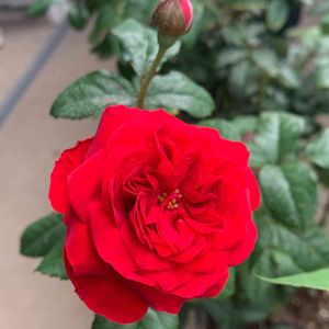 ロサオリエンティスのマイローズです♪❣️ホームセンターでお値下げになっていて、以前から欲しかったのでお迎えしました♪ 赤バラがお庭に咲くのは初めてなので嬉しいです😌❣️