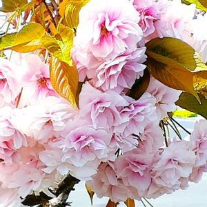 こんにちは😃☀️🌤 我が家の八重桜(牡丹桜)が咲きました(((o(*゚▽゚*)o)))♡🌸🍃🌸🍃🌸🍃🌸🍃🌸 裏庭の老木ですが、綺麗に咲いてくれ本当に嬉しいです。 o(^▽^)o🌸💗🌸💗🌸 ◎ 八重桜は、バラ科サクラ属の落葉広葉樹で、花びらがたくさんある桜の総称です。通常の桜の花びらは5枚なのに対し、八重桜は何枚もの花びらを重ねてつけることが特徴です。 1輪の花に平均10~130枚ほどの花びらがつき、「菊桜」「菊咲き」と呼ばれる種類になると、300枚以上の花びらをつけます。 また、花と同時に葉っぱをつけるものが多いことも、通常の桜との大きな違いです。品種改良によって生み出されたものが多いことから、山桜と対になる「里桜」とも呼ばれます。また、花の姿が牡丹と似ていることから、「牡丹桜」という別名がつけられました。 ◉ 水やり 地植えは、植え付け直後に1~2ヶ月ほど土が乾いたら水やりをすれば、後は降雨のみでも育ちます。鉢植えは、土の表面が乾きかけたら早めに水やりをします。 つぼみがふくらみはじめた頃の水切れに気をつけてください。 肥料の与え方 地植えは、2月と花後の5月の年2回、油かすと骨粉を等量で混ぜあわせた有機質肥料か、ゆっくりと効く緩効性化成肥料を与えます。 鉢植えはこれに加えて、3月と10月にも液体肥料を与えるとよい。 🏷 桜(さくら)リレー 🏷 ピンクワールドへようこそ