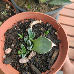久しぶりの投稿です。最近やっとあったかくなってきたので室内で冬越しさせたアガベたちを外に出しました。ついでに底から根っこが出ていた子は植え替え。 植え替え時にジェントリーのベビーたちを発見! 全部で6個の子株がありました!😁😁