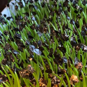 以前投稿したジェントリーがこの様になってきました。 撒きすぎて発芽したものをその前に発芽したものが持ち上げ乾燥死が続発してしまいました…😢