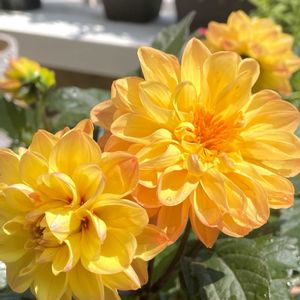 🧡今日の華…毎年球根から咲かせる胴葉のダリアちゃん🥰球根も増えるので6号鉢が今5個あります😅今年は黄色が強めになってピンクラインもあまり出て無いです😢 でも蕾はいっぱい🤭ダリアってほんに美しいお花やね♥️ Your blooming appearance is very nice♥️