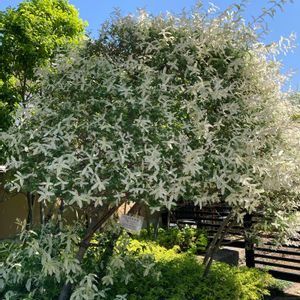 何の木だったかな😣 今日は良い天気だったので、お散歩がてら盆栽町へ行って来ました。 ちょうど盆栽まつりの開催中で素敵な町並みに盆栽の露天が出ていて賑わっていました✨ 写真の木は盆栽美術館の前に生えていた美しい🌲 白いのは花かと思ったら葉でした😳 そして写真をアップして見たら名札がありました! この木は イヌコリヤナギと言う木みたい🌲