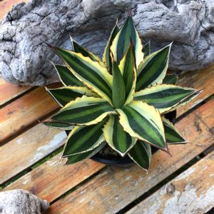 多肉植物としか書いてなかった! アガベっぽいけど何ていう種類だろう、、 追記、五色万代だと教えていただきました!ありがとうございます☺️