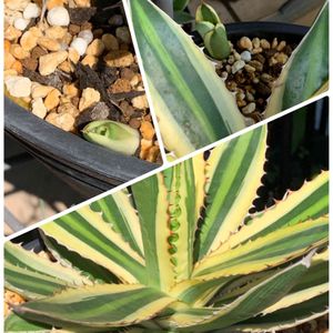 アガベ 五色万代🍃 ふと見ると鉢の縁に赤ちゃんが2つも🥰 成長が楽しみ🥰🌱