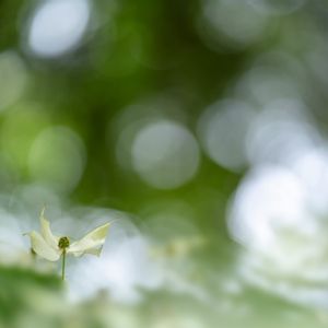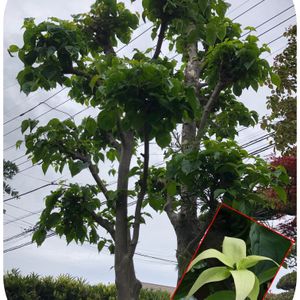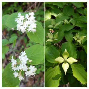 『マルバウツギ』 合ってますか~! 幼な木に咲く 『ヤマボウシの花』 薄緑色の、小さくて可愛いお花でした💓 数年後には見上げる所に花を咲かせるのでしょうね😌
