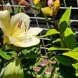 おはようございます🌞 庭のすかしゆりが黄色の大きな花を咲かせました🤗🏵️ 朝早くに水やりをしながら見つけた、ビタミンカラーの綺麗な花です😉👍️💞