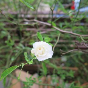 白万重、咲きました✨つるバラの巻き直しの時に花弁を少し痛めてしまったので引き気味で📸ふわっとした感じがすごく好み🤍🤍🥰 こじんまりな苗で心配でしたが急成長!つるバラもクレマチスも初めてで、巻き方が合っているのかよく分かりません…..とりあえず茂り過ぎてたので葉をプチプチ🌿🌿🌿つるバラって勢いが凄いんですね〜