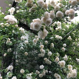 たわわなサマースノー💚🤍 つるばらって初めてですが、一気に咲くんですね〜
