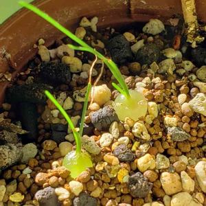 6/14と6/16に投稿してたやわらかイントリカータのその後。なんと、分球して、脱皮して、ツヤツヤ元気になって帰ってきました😭 埋もれてた子球も今のところ順調に成長してて、種は150-200粒くらい?は取れました👏 ドリミア イントリカータ climbing onion, losbol Drimia intricata キジカクシ目 Asparagales キジカクシ科 Asparagaceae ツルボ亜科 Scilloideae ドリミア属 Drimia (旧: シゾバシス属 Schizobasis)