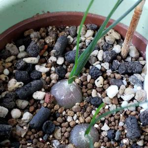 6/14に投稿したやわらかイントリカータ、鉢から出して乾燥させると復活するという話をみて、試してみようと土を崩したら子球ができてました😲 土をきれいに落としてよく見てみたーい!とウッキウキで水をかけたところで、「乾燥させる為に出したのに何やってんの・・・」と気づきました👉👈 イントリカータ climbing onion, losbol intricata キジカクシ目 Asparagales キジカクシ科 Asparagaceae ツルボ亜科 Scilloideae ドリミア属 Drimia (旧: シゾバシス属 Schizobasis)