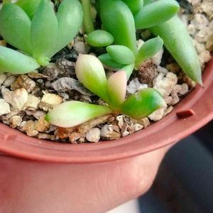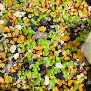 えぇ〜? アナカンプセロスって、葉挿しできたの? 確かに葉っぱは置いといたけどさ…ほんとに生えると思わんやん? 他の多肉は緑過ぎて何がなんだかわかんないし、この鉢どうしよう💦