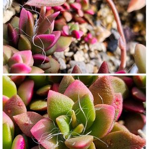 ~❀❀①②③ゲブラナガトヨ苗 ①ピンク染まりを頑張っている桜吹雪 しばらく気温低かったから・・ じゃ〜〜ん👋(・∀・)👋鮮やか🩷🩷 だんだん緑になるようです。 花も咲くらしくて・・楽しみ~☺️ ゲブラ アナカンプセロス桜吹雪 名前カッコいいʘ‿ʘ ゲブラの農場外の無人販売所でbuy👍 ②これポーチュラカ ハナスベリヒユ ゲブラのやつ *マジカルキューティー* はい🙂↕️名前バッチリ~👍イイねぇ😞 真っ赤な多肉に赤いお花咲くらしい♡♡ こちらも期待ワクワク~♡♡ ③引きの写真 セメント猫もひとつ増えましたキラ(ΦωΦ) 多肉の番猫𓃠 ④チマチマ多肉 ほったらかしでスカスカですー ⑤センペルビウム 子供・・これ しばらくこのままで良いんですよね。 周りに群がって可愛いやつだ♡♡ 多肉サボちゃんたちへ🌵🌵 私ん家 あんまり世話できてなくて・・ ごめんね😞・・ 毎年言ってる😅🌟🙏🌟