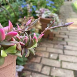 桜吹雪さんのベイビーラッシュ👶👶👶多肉の中ではお水が好きな方、お花咲いている時間が短く直ぐに閉店、一年中何となくピンク🩷、毛深くもしゃもしゃ😊増えやすいです♪
