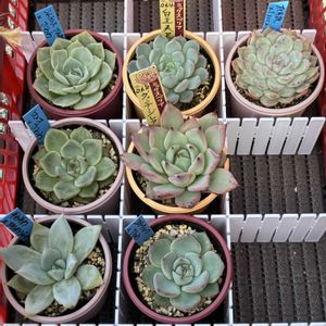 おはようございます😃 昨日は約3ヶ月ぶりの多肉狩り✨ 行きたいイベントは遠くてグッと我慢してました😣 ①お迎えした子たち ②ミックスベリア黒銀姫をゲット👍 白銀姫も欲しい👸 ③TY苗はどれも可愛い🩷 とっちゃん嫁ちゃんからのオマケも🤭 ④ゆきんこさん苗 いつも綺麗🥰 暖かい今日は植え替えしなくちゃ😁