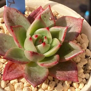 おはようございます😃 昨日の寒暖差は凄かった😨🥵 おかげで多肉ちゃんの紅葉🍁が進みますね👍 片想い✨✨ だいぶ徒長してるので上からパチリ📱 ピンクの縁取りがかわいい🥰