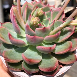 おはようございます😃 E.spF048サンタマリア×ロメオ✨✨ 我が家で最も名前を覚えられない子かな😅 昨年5月にお迎えした時よりひと回り大きくなって花芽も😆 もう少しピンクになったらいいな〜💗