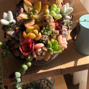 おはようございます😃 先日のイベントで購入した寄せ植えを限定リメ鉢に寄せ直しました✨✨ セダムで隙間を埋めるのが苦手な私😅😅 もう少し上手になりたいな🙄