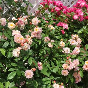 H2500のプリペッドの生垣の手入れに限界を感じて、H2200のフェンスを設置。2年目です。 右がピエールドロンサール、左がアンジェラ。覆い尽くすまであと何年かな?😆