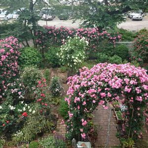 2階から見渡す『アンジェラ』満開。 地植え5年目です。 気分はまるでプリンセス😍。