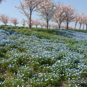大阪市此花区 舞洲シーサイドパーク…🤗🤗 ネモフィラ祭り…行って来ました🤗🤗 桜もまだ残っていて桜とネモフィラのコラボ写真が撮れました🤗🤗 しばらくネモフィラ続きます🤗🤗