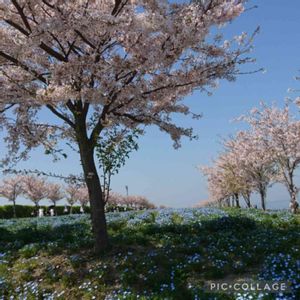 大阪市此花区 まいしまシーサイドパーク ネモフィラ祭り…🤗🤗 桜とネモフィラのコラボ…ちょっと外国みたいな景色…🤗🤗