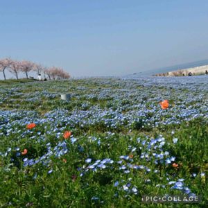 桜🌸ネモフィラ、海、空、ナガミヒナゲシ 気持ちのいい景色でした😍