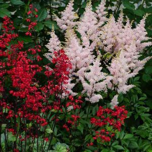 ピンクのアスチルベが咲いて ずーっと咲いているヒューケラのお花と、コラボしました💮