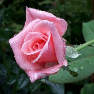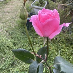 昨年挿し木したクイーンエリザベス、一個だけ蕾が付いていました。❤️ 雷雨の朝に開花☂️ 雨の雫💧キラキラ✨お似合いよ(*´︶`*)✿