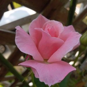 我が家のバラ「クイーン・エリザベス」のお花が開きました。🌞 柔らかいピンク色です。🌺