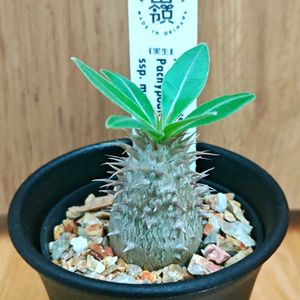 パキポディウム マカイエンセ (実生) 先週末、鶴仙園の2Dayイベントでお迎えした、嶺ファーム産の実生マカイエンセです✨ 初マカイエンセ ボテッとしたシルエットがかわいいです。 環境になれるまでは窓辺だね〜