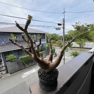 ぞくぞくとパキポがお目覚めする中 熟睡中だったうちのマカイ 株が硬いしなんとなく枝先が緑がかっていたので心配はしてなかったよ… でも待ってた〜😆🙌 ようやくうとうと起きてきた〜🎶