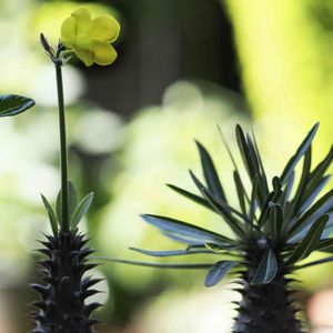 3年生のパキポディウムに初めて花が咲きました。 実生株の成長って変化に富んでいて本当に面白い。 多肉植物に関して全く知識がなかった私にいろいろ教えてくれた人たちに あらためて感謝🍀✨ この感動を忘れずに実生を続けていきたいな。