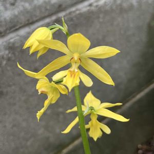 💛エビネ蘭 エビネ属 ☆名前は、根の形が海老のシッポに似ていることからと… ☆茨城県の親戚の裏庭に、 沢山自生していた物を増やして育てられています♡ 黄エビネは沢山増えています。 園芸用に品種改良され多くの種類が作り出されていますネ♪