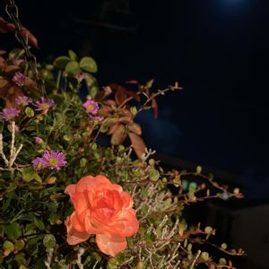 こんばんは☺️ ハンギングバスケットの中で、ミニ薔薇🌹さんが可愛くさいてます🥰 満月のお月様🌝もとっても綺麗✨雲が多くて、時々隠れてしまいますが、タイミング良く綺麗に写すことができました🥰 良い夢見れそう💕