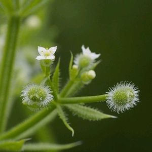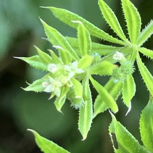 あちこちに生えているヤエムグラに白い小さな花が咲きました‼️ もうトゲトゲの小さい実もできています。 ⑤枚目は同じように小さいカスマグサさんとコラボです❣️