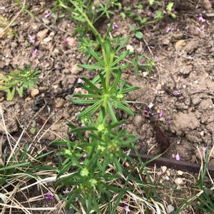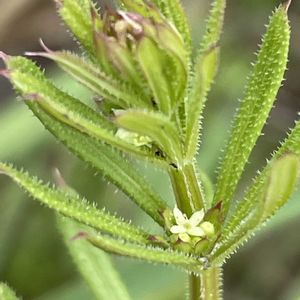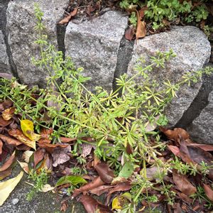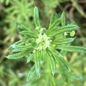 ★ヤエムグラ(八重葎)★ アカネ科の1〜越年草 花期:5〜6月 葉は6〜8個が輪生、広線形または狭倒披針形、先端は刺状にとがり、縁と裏面の主脈には逆向きの刺。茎の先や葉腋から花序をだし、小さな黄緑色の花をつける。花冠は4裂、4個の雄蕊。 1、2mmほどのちっちゃなお花。元々ド近眼で毎年加速する老眼。既に裸眼では認識出来ず、カメラパシャパシャ、何度もパシャパシャ、からの〜画像確認😆 2025.4.20 📷️