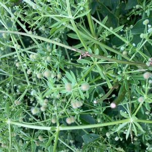 ヤエムグラに可愛いポンポンのような実ができている😊 下の段には小さなお花(2枚目) 順々に実になっていくんだな🟢🟢